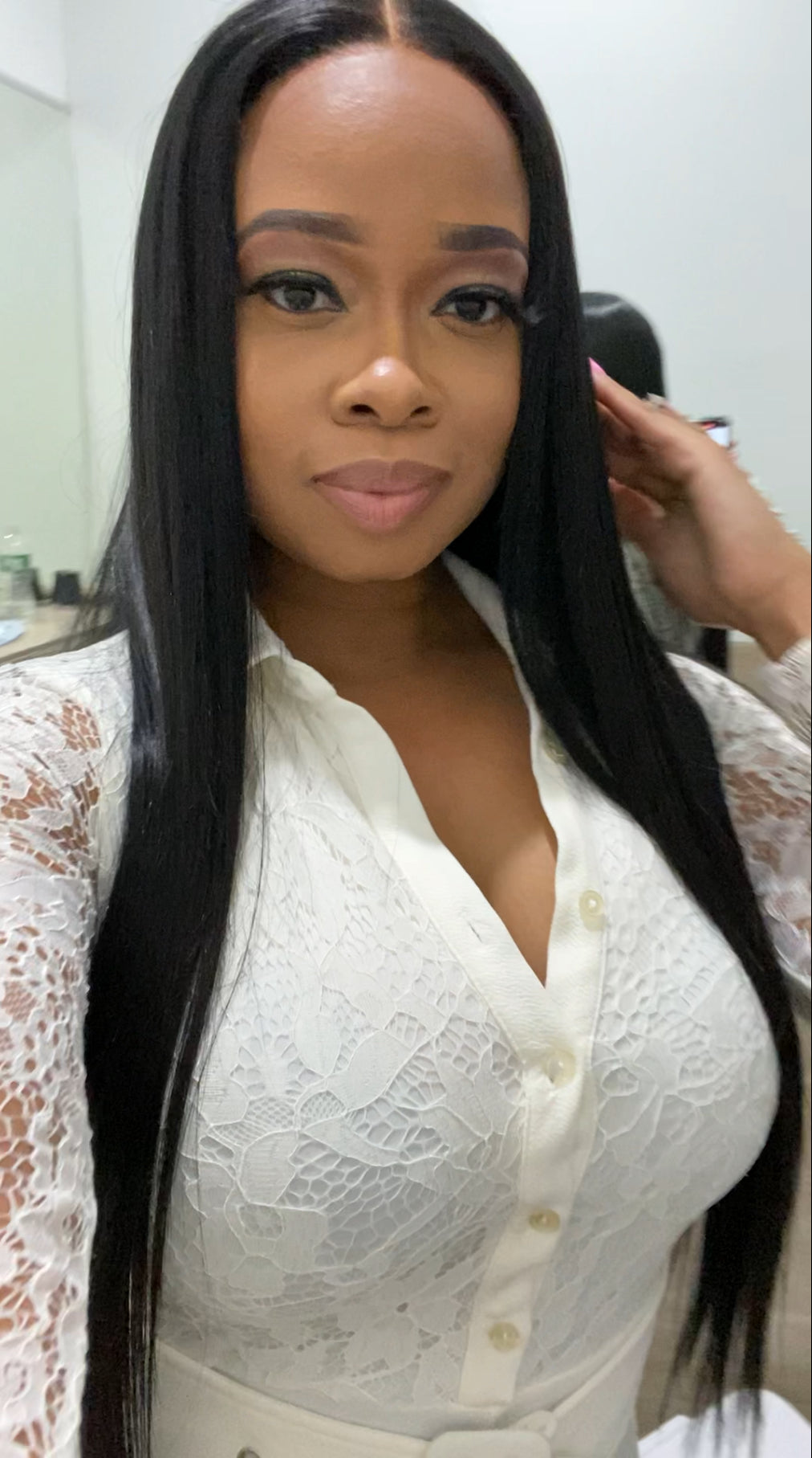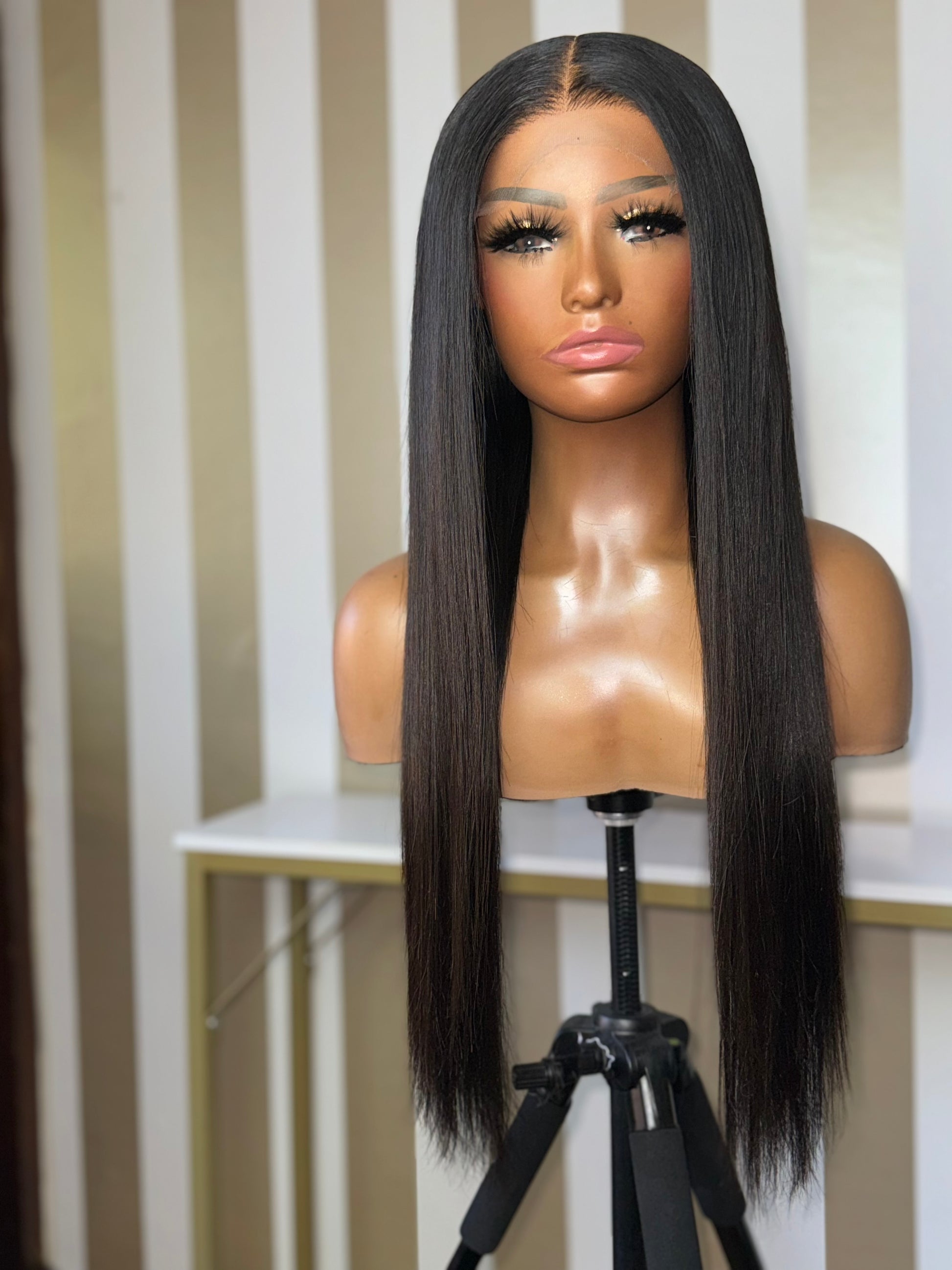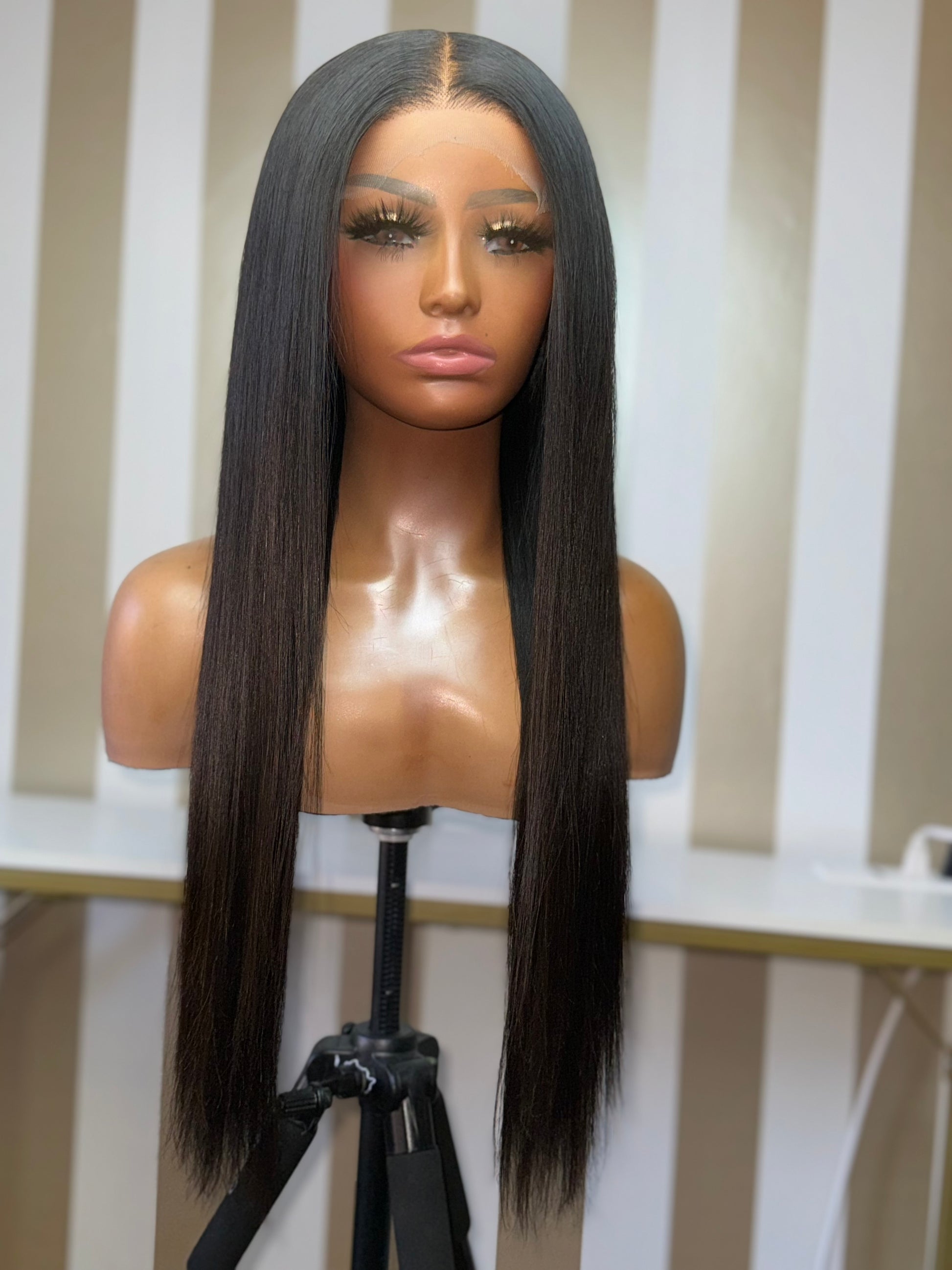 Our Glueless Wig in Natural Black (1B) offers a seamless blend of beauty and convenience. Made with 4 bundles of Brazilian straight raw premium-quality bundles, this wig is machine-sewn and carefully crafted for durability and natural movement. It features light layering to add dimension and volume, creating a flattering silhouette.